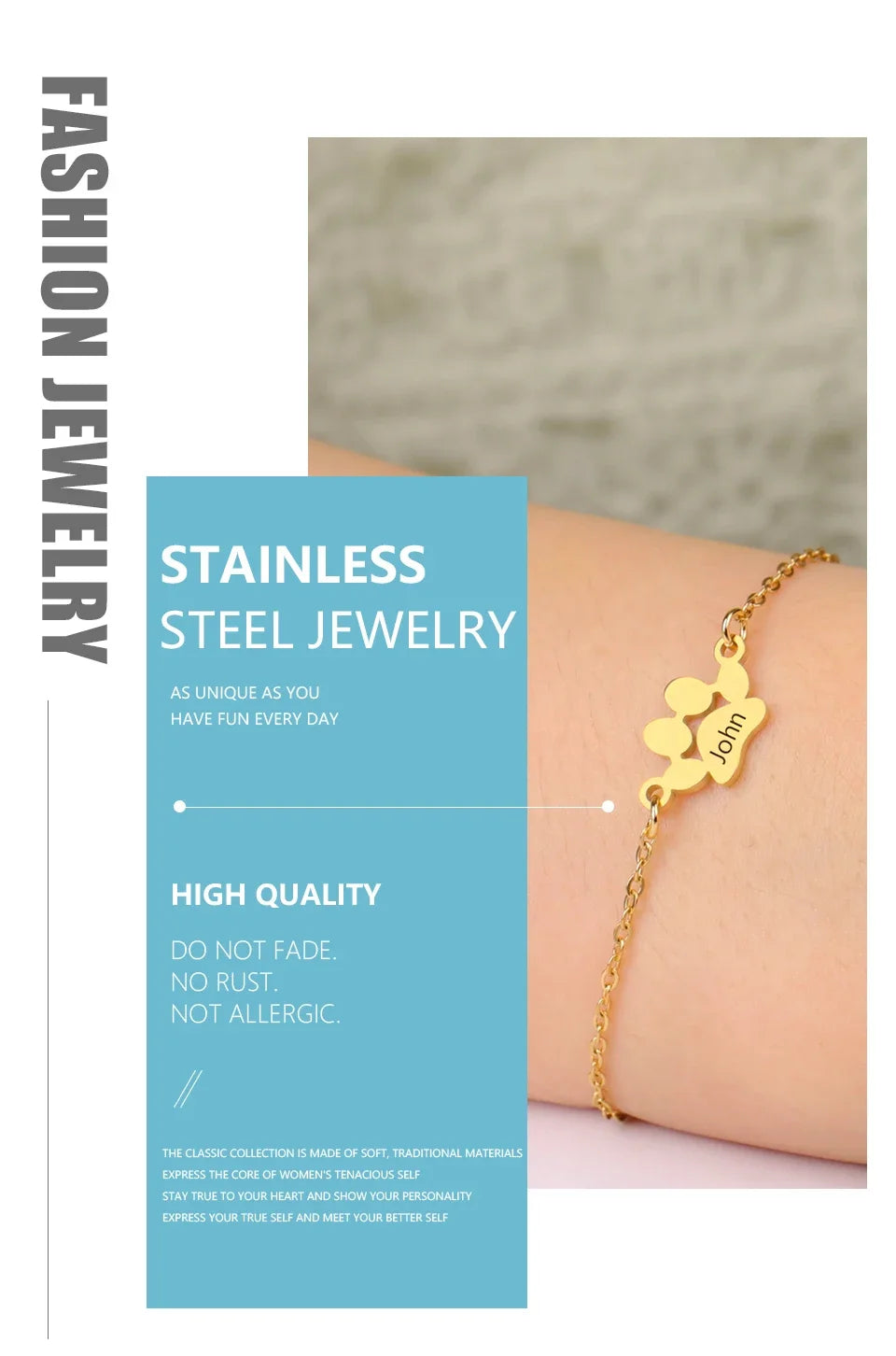 Celebrate your bond with your fur baby with this beautifully crafted custom paw name bracelet. Made from premium stainless steel, this personalised pet bracelet can be engraved with up to 4 pet names – the perfect keepsake for dog mums, dog dads, and every pet lover in between.